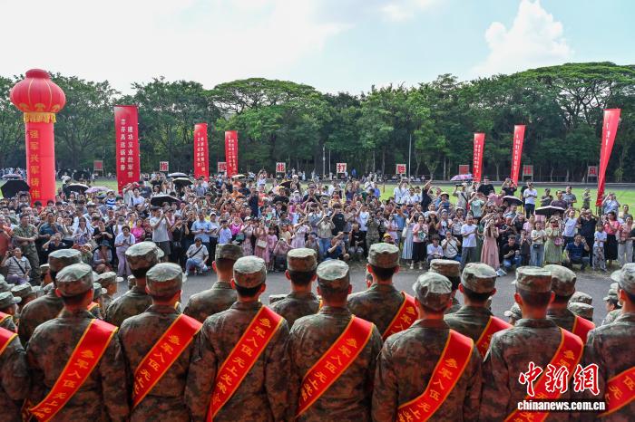 9月14日,广州越秀2025年春季新卒退伍欢迎年夜会正在广州平易近卒准备役练习基天举办。图为退伍新卒参与送行典礼。中新社记者 旧骥旻 摄