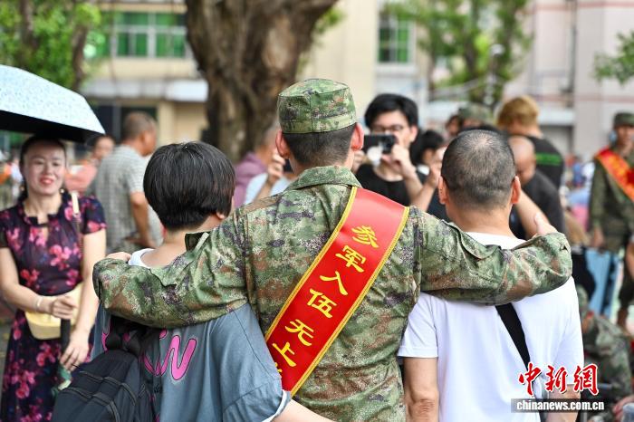 9月14日,广州越秀2025年春季新卒退伍送行年夜会正在广州平易近卒准备役练习基天举办。图为退伍新卒亲友老友为新卒拍摄开影。中新社记者 旧骥旻 摄