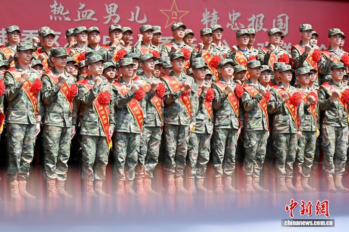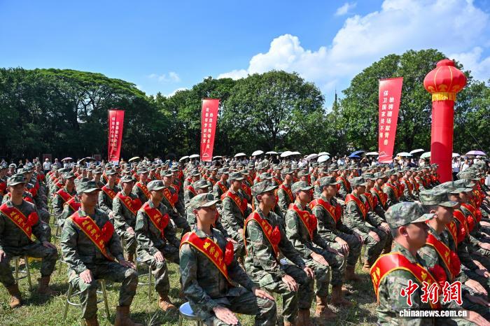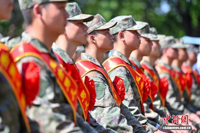9月14日,广州越秀2025年春季新卒退伍欢迎年夜会正在广州平易近卒准备役练习基天举办。图为退伍新卒参与欢迎典礼。中新社记者 旧骥旻 摄